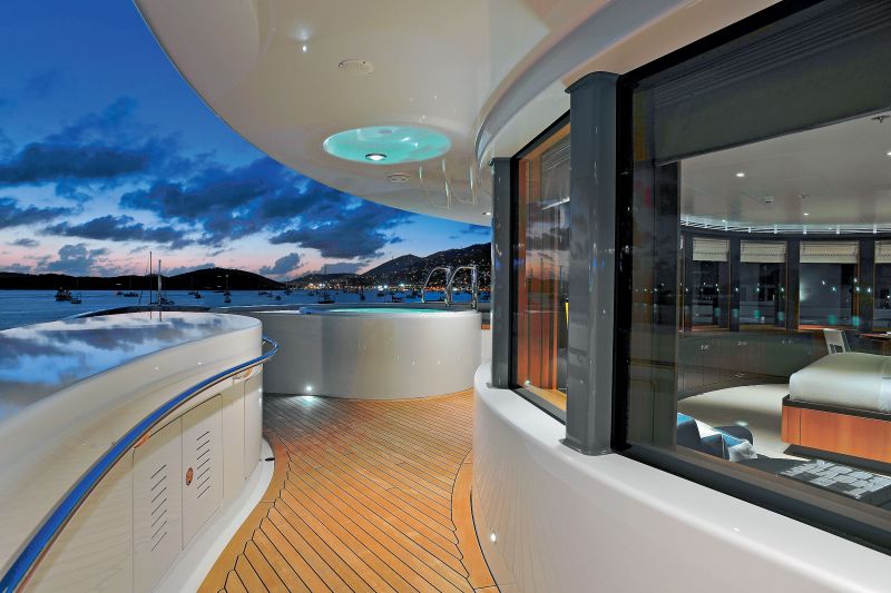 Еще одна интересная черта Madsummer — нестандартная организация пространства на борту. Яхта напрочь лишена таких показных элементов, как грандиозное фойе или массивные лестницы, ведущие на верхние палубы, — словом, всего того, на что зеваки обычно заглядываются с берега. Приватность — вот на что были направлены все усилия проектантов и дизайнеров.
