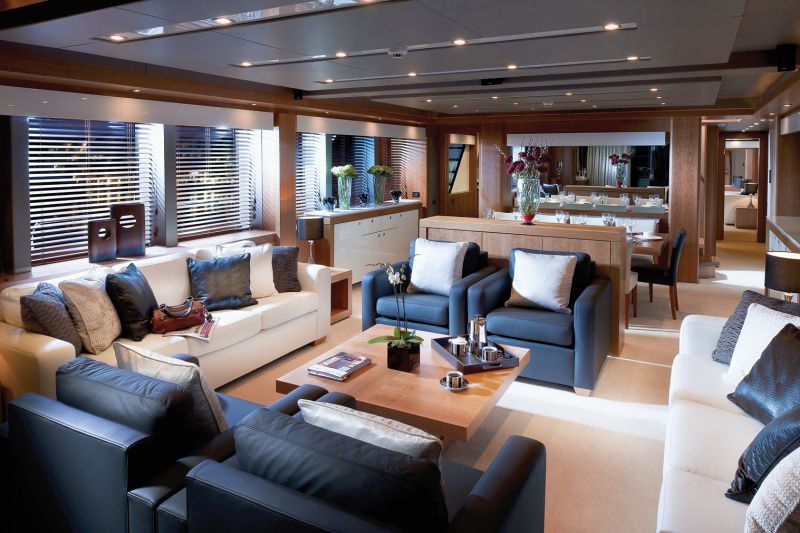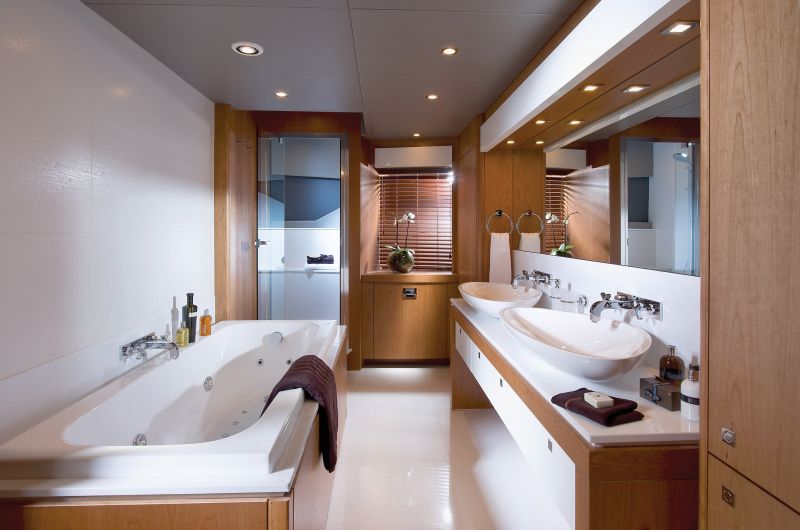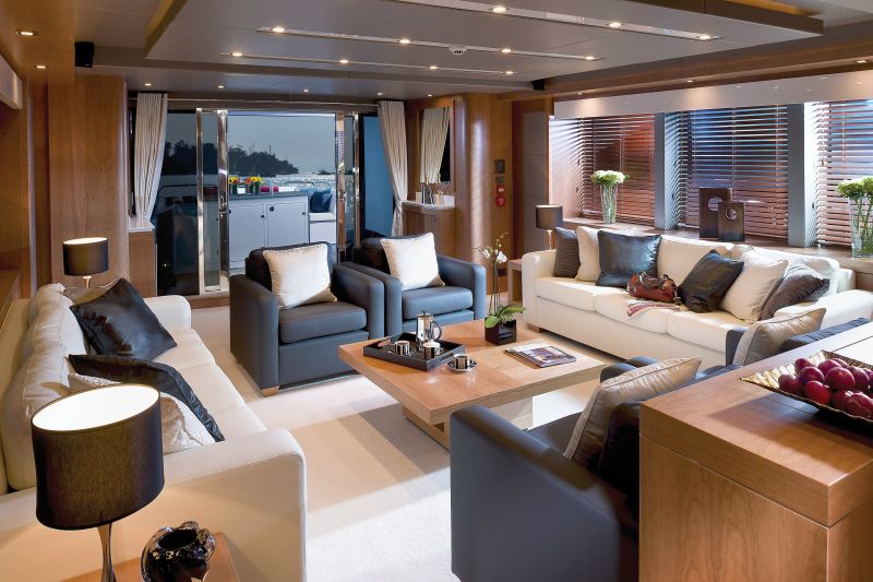 Главный салон может быть оборудован балконом (опционально) по правому или по левому борту. Эта популярная с недавних пор деталь дополняется раздвижными стеклянными дверями, отделяющими балкон от пространства салона и позволяющими созерцать морскую гладь не покидая мягкого дивана в салоне.