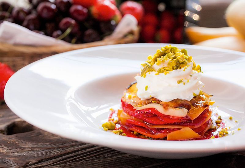 Сезонное гастрономическое предложение от шеф-повара ресторана «Донна Маргарита» не оставляет сомнений в том, что лето уже в городе. Легкий салат со спаржей, томатами и яйцом, суп из мидий, окрошка на квасе, брускетты – все это приятные поводы, чтобы заглянуть к Паоло Бокколини. На горячее маэстро Бокколини предлагает нежную каламарата с кальмарами и кремом из спаржи, а на сладкое обязательно попробуйте лазанью из манго и клубники.