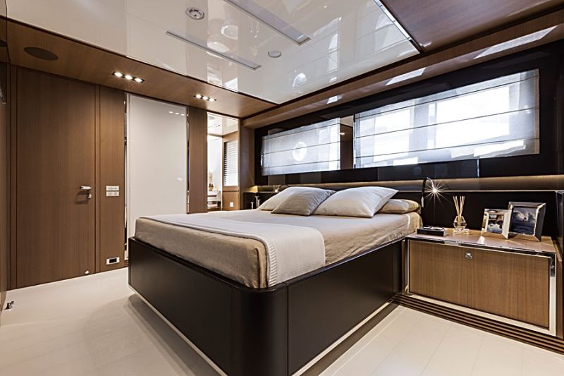 В интерьере Sol, выполненном в современном сдержанном стиле, преобладают спокойные цвета и приятные текстуры. В декоре использованы орех, кожа, хромированная сталь, стекло. В основном салоне предусмотрены ставшие уже традиционными широкие окна, позволяющие насытить его естественным светом в дневное время и обеспечивающие панорамный обзор. Ближе к носу удобно расположен просторный и удобный камбуз, выполненный в белых тонах. Известно, что владелец яхты увлечен кулинарным искусством. Поэтому в камбузе имеется небольшой столик и шесть стульев для дегустаций и неформальных обедов и ужинов.