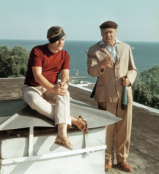 Напоследок хотелось бы поразмышлять, почему «Бриллиантовая рука» возглавляет большинство рейтингов самых любимых отечественных фильмов всех времен, обходя как другие гайдаевские хиты вроде «Операции “Ы” …» и «Ивана Васильевича…», так и, условно говоря, «серьезное» кино (например, «...А зори здесь тихие» или «Летят журавли»). Дело, пожалуй, в том, что зритель очень легко может отождествить себя с главным героем: обычным – смешным, нелепым, увлекающимся – человеком в необычных обстоятельствах. Попав в переплет, старший экономист в «Гипрорыбе» Семен Горбунков ведет себя примерно так же, как и любой другой на его месте: ошибается, пугается, очень неумело врет жене. А еще «Рука...» – это история теневой советской жизни, реальных (а не окультуренных кинематографом) общественных и финансовых отношений. «Чтоб ты жил на одну зарплату!» – это не только известная всем хохма, но и пароль, понятный каждому, кто застал эпоху дефицита, когда приходилось «доставать» даже самые насущные товары. От себя добавим: уж если на зарплату, то хотя бы в Сочи.