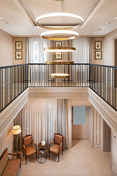 Трехэтажный особняк площадью 440 кв. м. находится на первой береговой линии и утопает в пицундских соснах. Интерьер виллы сочетает в себе роскошь, классику и минимализм. Легкие элементы античности, ампира и арт-деко, воплощенные в монументальности и симметрии. В отделке используются дорогие материалы и благородные оттенки. Вилла включает 4 спальни, гостиную, кухню, рабочий кабинет, беседку, площадку для барбекю на улице. К услугам гостей: бассейны с морской водой, wellness и spa-центры, рестораны и бары, Гастрономическая набережная, территория 5 Га соснового парка, благоустроенные пляжи, клиника «Ланцетъ».