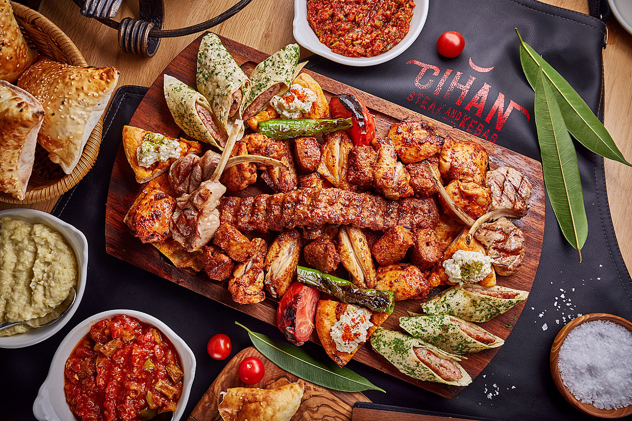 Сеть турецких ресторанов Аркадия Новикова Cihan Turkish Steak and Kebab носит имя своего бренд-шефа — Джихана Дениза. Это гастрономическая концепция, построенная на сочетании современных кулинарных трендов и рецептов, любовно собранных в разных уголках Турции. Ценителей мяса приятно удивит большой выбор стейков — от классических до альтернативных, а также смелые эксперименты с влажным вызреванием, кёфте, мезе с тающими во рту лепешками из тандыра, 20 видов кебабов и лукум-версия привычных бургеров. Все это сопровождается эффектной шоу-подачей в лучших традициях турецкого гостеприимства. Летом рекомендуем занимать столик на просторной веранде среди цветов, сквозь которые пробиваются ласковые солнечные лучи.