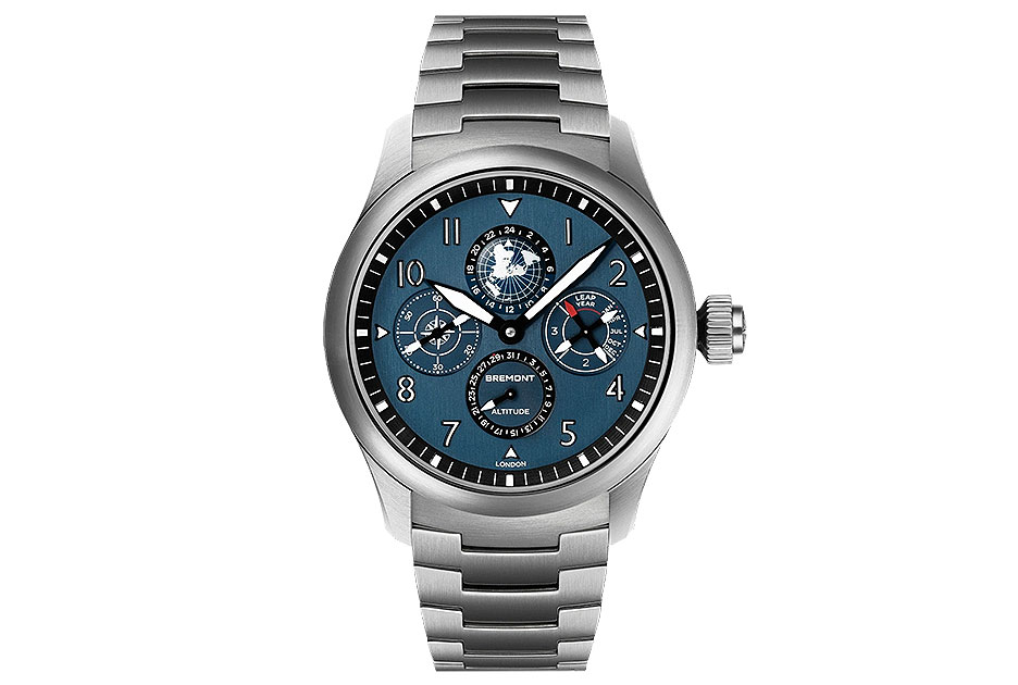Независимый британский бренд Bremont, также известный достаточно демократичными часами, в основном в стиле винтажного милитари, неожиданно для всех представил самую сложную модель в своей коллекции. В Altitude Perpetual Calendar GMT установлен калибр BHC9192-MH, который был эксклюзивно разработан в ателье Agenhor на базе Sellita AMT 6900 с ручным заводом. В нем присутствует модуль вечного календаря, а также 24-часовой модуль GMT, который легко корректируется нажатием боковой кнопки. Корпус диаметром 42 мм изготовлен из титана, а циферблат окрашен в оттенок RAF Blue, вдохновленный синей униформой британских военных летчиков. Серия ограничена 50 экземплярами.