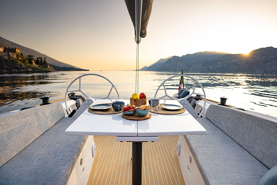На первый взгляд это простой, симпатичный дейсейлер, на котором можно и в любительской регате поучаствовать (две рулевых консоли, подъемный киль, приличное вооружение, включая code zero), и выехать с друзьями на морской пикник.