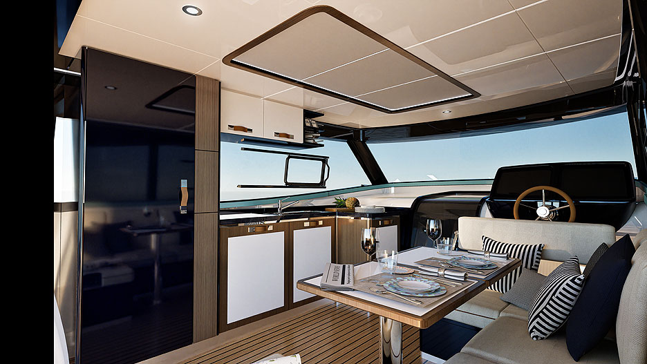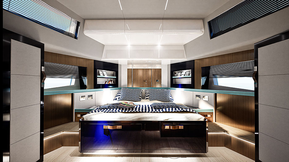 На выбор предлагаются два двигателя Volvo Penta IPS 700 или 800, сочетающие экономичность, маневренность и мощность. А для консерваторов — версия на валах с двигателями Volvo Penta мощностью 600 л. с.