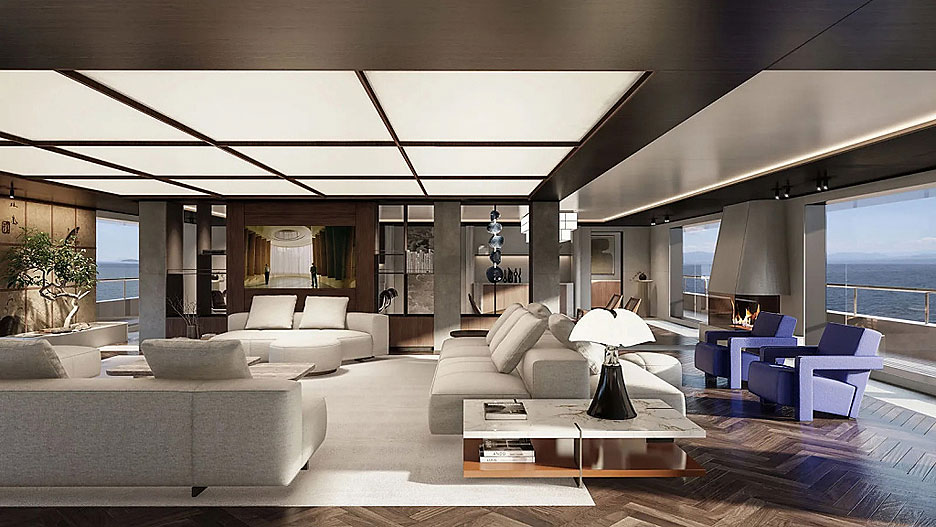 Двухуровневые апартаменты владельца соседствуют с восемью гостевыми каютами, которые можно легко соединять попарно. Просторный салон примет до 30 человек, а два скайлаунжа на верхней и мостиковой палубах подарят захватывающие виды.