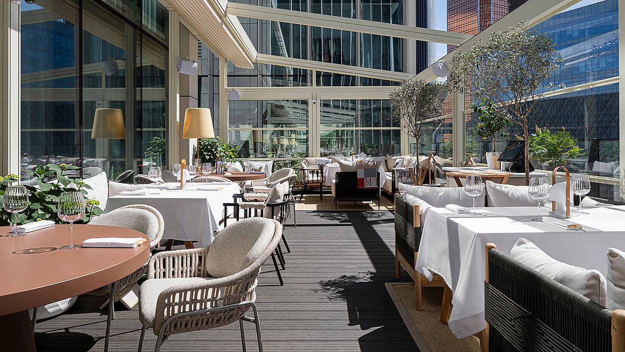 В ресторане Ivanka на четвертом этаже галереи Neva Towers открыли летнюю веранду площадью 300 кв. м. Впечатляющий вид на сверкающие небоскребы, интерьер в сливочных тонах с элегантной плетеной мебелью и оливковыми деревьями, прозрачные экраны, стирающие границы между террасой и мегаполисом, и крыша-маркиза, которая укроет гостей от любых капризов погоды. Контраст теплой обстановки с футуристическим окружением завораживает. Рука сама тянется к телефону, чтобы поскорее запечатлеть все это.