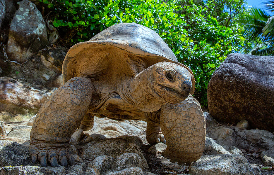 Рай, просто рай, к которому человеческие руки почти не притронулись. Здесь правят гигантские сухопутные черепахи, когда-то прибывшие сюда с далекого атолла Альдабра. Малышей выращивают в питомнике до пяти лет, а потом отпускают на волю. И теперь на острове живет целая армия — около 500 этих древних созданий.
