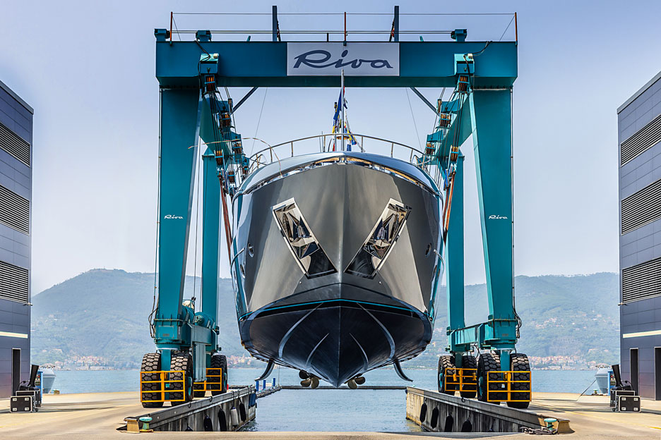 Riva показывает обновленную модель Dolcevita длиной 34,4 м. Ее главной особенностью стали просторные открытые зоны, такие как пляжный клуб с ультранизкой платформой c откидными бортами площадью 35 кв. м, обеспечивающей легкий доступ к воде. В Riva 112‘ Dolcevita Super переработана планировка и увеличены размеры окон на главной палубе. Дизайнеры полностью поменяли обстановку на флайбридже. Свободно стоящая мебель обеспечивает гибкость планировки и максимально непринужденную атмосферу. Посередине расположен бар с телевизором, напротив которого находится просторная диванная зона.