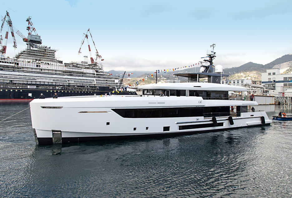 Benetti наконец покажет свою новую линейку Class. Ее можно будет оценить на примере первой модели — 42-метровой Juno’s 7, ставшей к тому же крупнейшей яхта из GRP в истории верфи. Дизайн интерьера и экстерьера принадлежит Кассетте, как и у Singolare. Интересно, как он играл с объемами помещений при помощи прозрачных поверхностей, таких как зеркала в главном салоне, которые отражают свет и воду, создавая ощущение более просторного и яркого пространства.