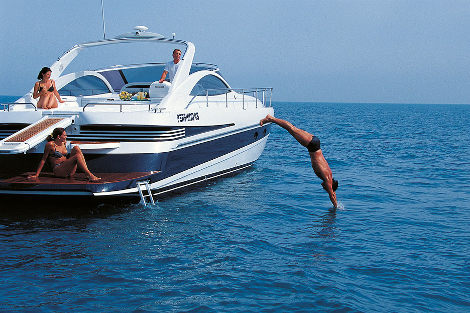 The company's first creation was the Pershing 45, launched in 1985. It was a 13-meter open motor yacht with a spacious cockpit, three cabins each with its own bathroom, and the ability to reach speeds of 37 knots.