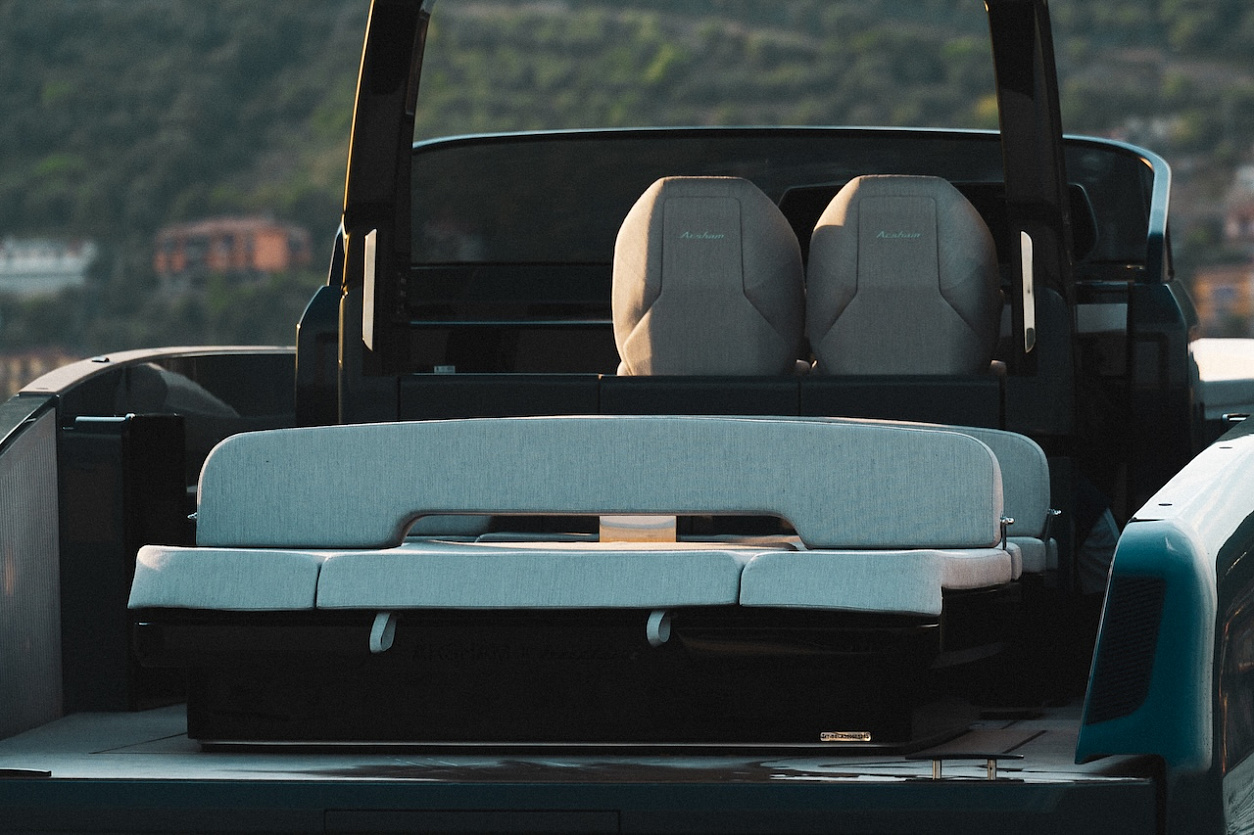 Интерьер оформлен тканями и аксессуарами из коллекции Kohler x Daniel Arsham. Сюрприз для гиков — Astor 36 имеет инновационный цифровой паспорт продукта на основе блокчейна. По нему можно отследить всю производственную цепочку конкретного экземпляра и получить доступ к эксклюзивным услугам.
