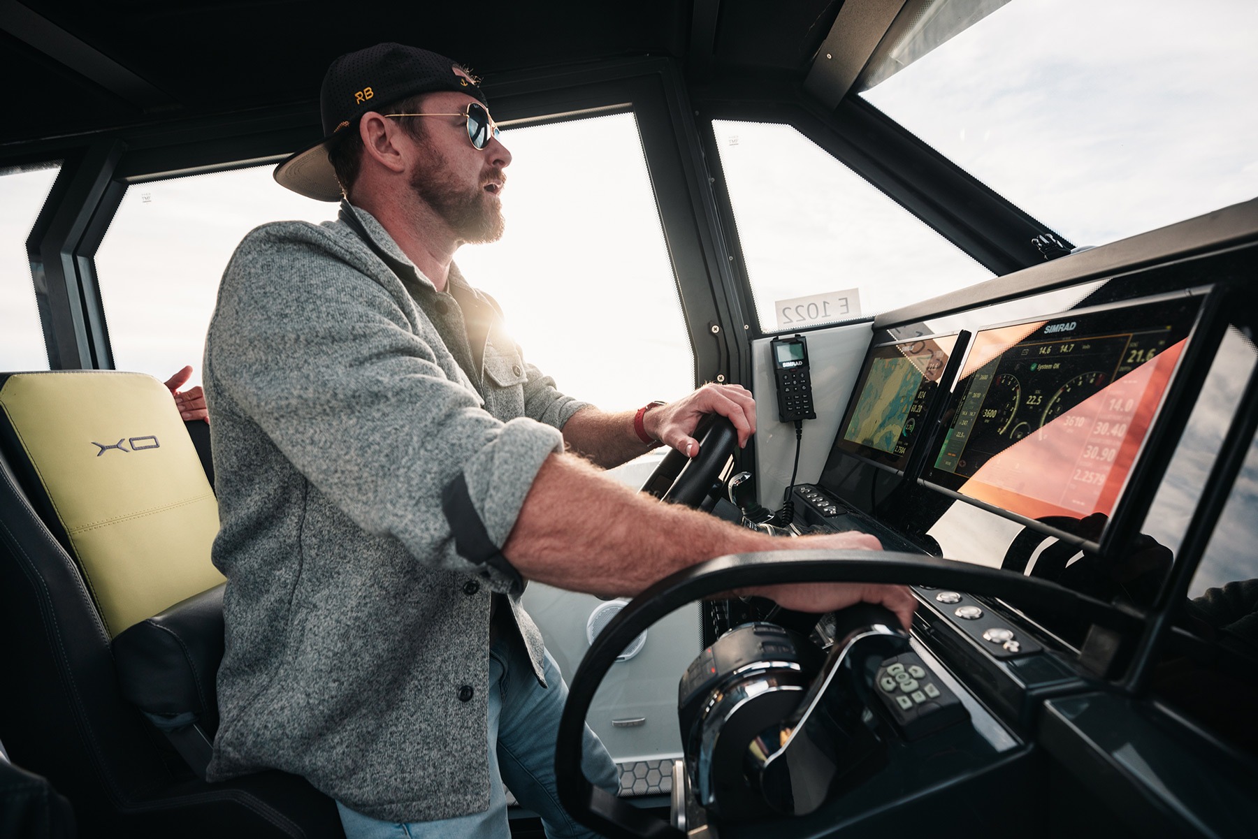 Катер DFNDR 9 стал первой моделью XO с центральной консолью. Такую компоновку оценят рыболовы — хоть в кабине такой лодки и теснее, зато можно свободно перемещаться вдоль борта с удочкой, выгадывая момент, чтобы подсечь трофей.