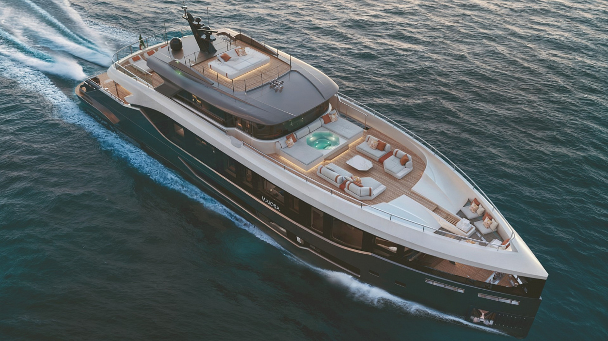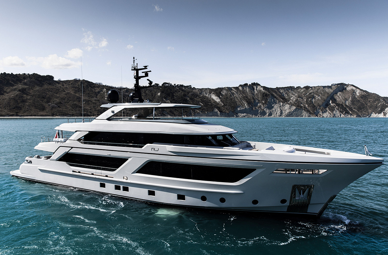 RJ – флагман итальянской верфи и самая большая из премьер Каннском фестиваля 2025. Эта стальная экспедиционная яхта с дальностью плавания более 5000 морских миль. Дизайн линейки RJ разработал Франческо Пажковски, а отличительными чертами модели стали удлинённые свесы палуб и просторные кормовые террасы. Архитектура корпуса – работа студии Pierluigi Ausonio, а интерьер создан Ахиллом Сальваньи. Яхта рассчитана на 12 гостей в пяти каютах и является эволюцией RJ 130, спущенной на воду в 2021 году под именем RJ (ныне Nuri).