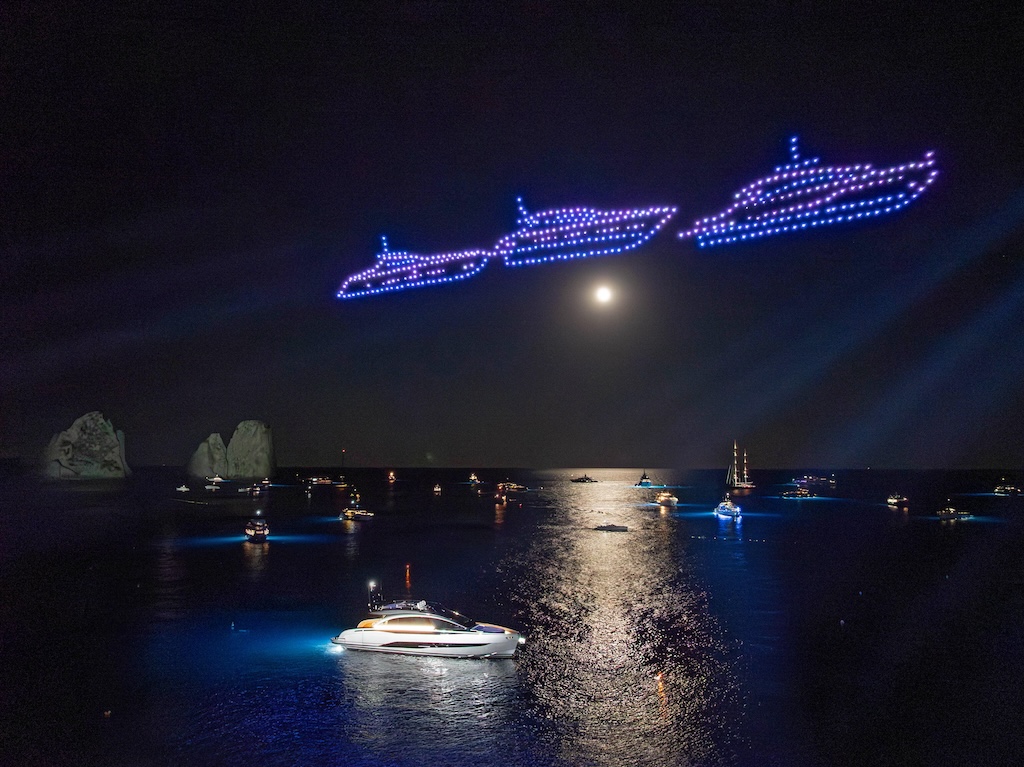 The festivities began with the unveiling of the new Pershing GTX70, followed by a dazzling drone light show featuring 300 drones. Guests watched the spectacle from the iconic Capri restaurant La Canzone del Mare and enjoyed a live performance by Gianluigi Lembo from Anema e Core.