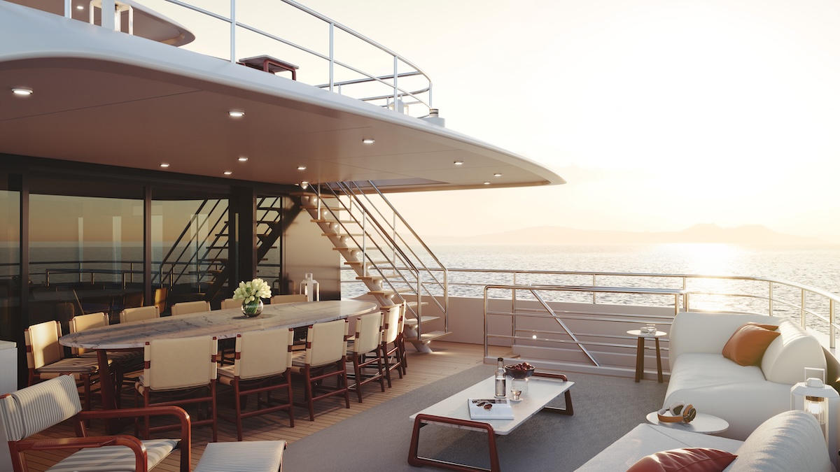 The yacht’s generous 760 GT interior has been masterfully designed by Luca Dini Design and Architecture as a modern ode to the golden age of ocean travel and represents the exceptional in-house work of Heesen Yachts Interiors. The design harmonises expansive, light-filled spaces with the rich, warm tones of natural wengé wood, creating an atmosphere of timeless elegance. The full-beam owner’s apartment is a private sanctuary, complete with a study, a luxurious bathroom featuring Calcite Blue stone, and a private veranda allowing the owners to enjoy privacy outdoors. Four spacious guest suites are located on the lower deck, with a versatile fifth cabin on the bridge deck.